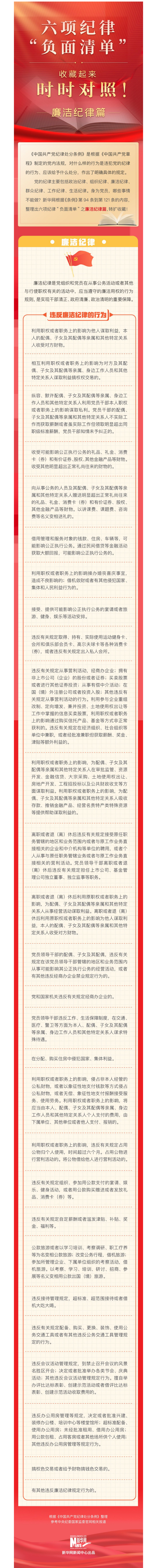【學(xué)條例 守黨紀(jì)】六項紀(jì)律“負面清單” | 廉潔紀(jì)律篇