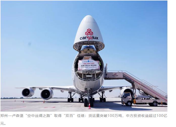 2014年1月,河南航投收購盧森堡貨航35%股權(quán)簽約儀式在鄭州舉行。同年6月,首條鄭州—盧森堡國際貨運(yùn)航線開通,同年11月,盧森堡貨航鄭州航線貨運(yùn)量就突破1萬噸;2015年11月,貨運(yùn)量累計(jì)突破5萬噸,國際貨運(yùn)量、國際貨運(yùn)航線數(shù)、航班數(shù)量、國際通航點(diǎn)等主要指標(biāo)躍居鄭州機(jī)場首位;2016年6月,累計(jì)貨運(yùn)量突破10萬噸;2019年5月,50萬噸;2021年8月,80萬噸,2023年6月突破100萬噸。