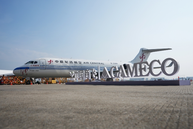 10月30日,中國商飛在廣州向河南航投集團(tuán)交付ARJ21客改貨飛機(jī)。作為啟動(dòng)用戶,這也是河南航投收到的首架ARJ21客改貨飛機(jī)。中國商飛黨委書記、董事長賀東風(fēng)向集團(tuán)黨委書記、董事長張明超移交交付紀(jì)念鑰匙。中國商飛黨委副書記、董事譚萬庚,中原龍浩航空董事長郭建業(yè)等致辭,中國商飛黨委常委、副總經(jīng)理、總會計(jì)師吳永良向河南航投租賃頒發(fā)飛機(jī)銷售證,民航中南局副局長陳維向中原龍浩航空頒發(fā)單機(jī)適航證、國籍登記證、無線電臺證。中國商飛黨委常委、副總經(jīng)理張玉金主持儀式。