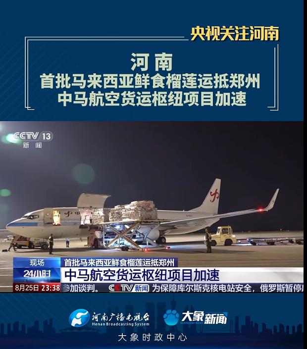 大象新聞客戶端 | 【央視關(guān)注河南】首批馬來西亞鮮食榴蓮運抵鄭州