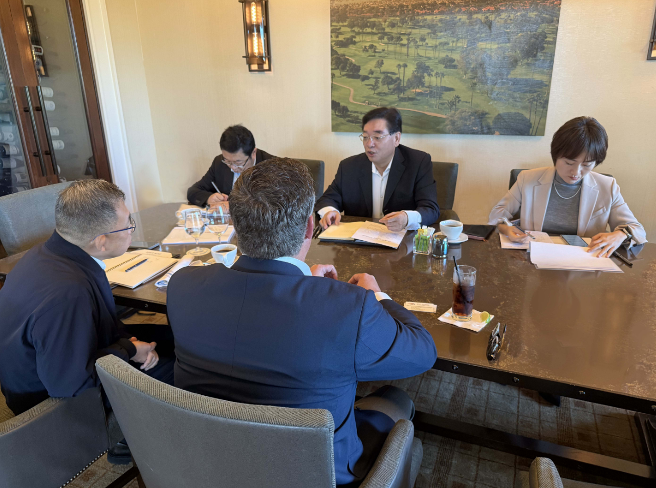11月22日,代表團(tuán)一行在洛杉磯與Wallace銷售副總裁Bryan會(huì)談,美國康尼航空相關(guān)業(yè)務(wù)負(fù)責(zé)人一同參加。張明超介紹了中豫航空集團(tuán)簡況和鄭州機(jī)場當(dāng)前業(yè)務(wù)布局。他表示,在Wallace的促成下,美國康尼航空今年在鄭貨運(yùn)量增幅超過50%,與鄭州機(jī)場貨量同步達(dá)到歷史峰值,物流服務(wù)集成商、航空公司、樞紐機(jī)場三方資源疊加,實(shí)現(xiàn)了優(yōu)勢互補(bǔ)和共贏發(fā)展,希望Wallace和美國康尼航空進(jìn)一步拓展在鄭業(yè)務(wù),加強(qiáng)與中原龍浩航空等本土貨運(yùn)航空公司的合作,中豫航空集團(tuán)將一如既往給予支持。Bryan表示,今年5月,Wallace與美國康尼航空開通了鄭州機(jī)場首條直飛亞特蘭大/達(dá)拉斯的國際定期貨運(yùn)航線并順利運(yùn)營至今,為各方發(fā)展提供了支持。目前,鄭州機(jī)場已經(jīng)成為美國康尼航空在中國大陸投放運(yùn)力最多的機(jī)場,Wallace希望能繼續(xù)與中豫航空集團(tuán)保持良好的合作關(guān)系,并將根據(jù)市場需求適時(shí)增加在鄭運(yùn)力。