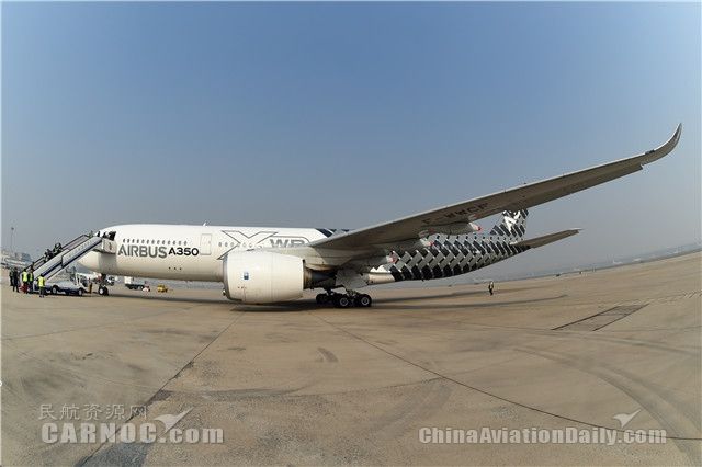 11月2日一架身披碳纖維特殊涂裝的空客A350-900測(cè)試飛機(jī)飛抵北京首都國(guó)際機(jī)場(chǎng),并在11月3日進(jìn)行展示。A350是目前世界上最先進(jìn)的遠(yuǎn)程寬體飛機(jī)。北京是空客A350中國(guó)巡演活動(dòng)的第三站,之前這架生產(chǎn)序列號(hào)為MSN2的測(cè)試飛機(jī)已經(jīng)訪問了珠海和???,接下來它還將飛抵上海、廣州和成都進(jìn)行靜態(tài)和飛行展示。