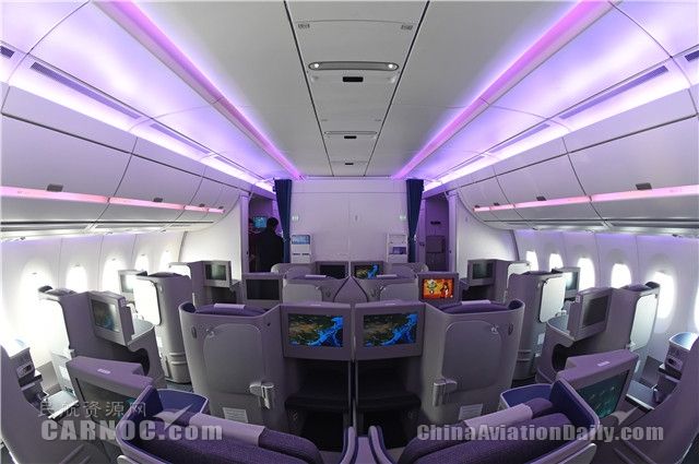 MSN2采用兩級(jí)客艙布局,商務(wù)艙擁有42個(gè)可全平躺的座位,經(jīng)濟(jì)艙擁有210個(gè)座位。A350樹立了最新的乘坐舒適性標(biāo)準(zhǔn),乘客無論身處哪個(gè)艙位,都可以獲得更大的個(gè)人空間。另外,A350客艙還擁有更大的舷窗、更大的頭頂行李艙,以及最新一代機(jī)上娛樂系統(tǒng)和空中上網(wǎng)功能。