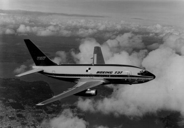 圖:1967年4月9日,第一架波音737-100飛機首飛。圖片來自波音