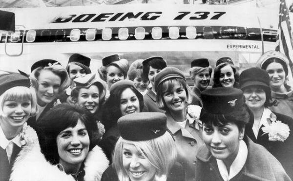 圖:1967年1月,17家已經(jīng)訂購了737飛機的航空公司空姐在第一架737飛機前合影。圖片來自美聯(lián)社