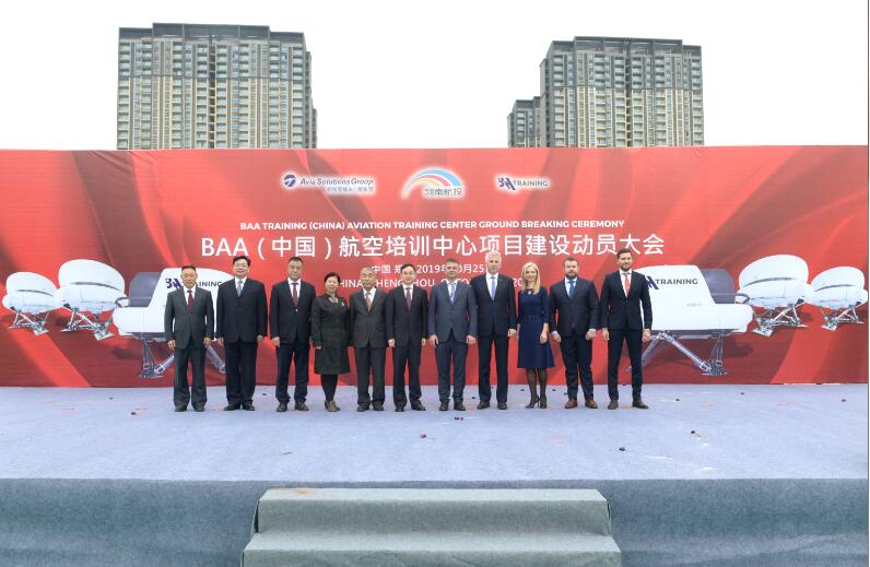 10月25日上午,BAA(中國(guó))航空培訓(xùn)中心項(xiàng)目建設(shè)動(dòng)員大會(huì)在航空港區(qū)舉行。隨著第一鍬土填入基坑,中原首家航空培訓(xùn)中心正式開工建設(shè)。該項(xiàng)目填補(bǔ)了河南省航空培訓(xùn)產(chǎn)業(yè)的空白,進(jìn)一步完善了河南民航產(chǎn)業(yè)鏈條。省外事辦、省財(cái)政廳、鄭州航空港實(shí)驗(yàn)區(qū)管委會(huì)相關(guān)領(lǐng)導(dǎo),河南航投黨委書記、董事長(zhǎng)張明超,總經(jīng)理、黨委副書記、副董事長(zhǎng)劉建葆;立陶宛阿維亞解決方案集團(tuán)董事長(zhǎng)格迪米納斯,立陶宛阿維亞解決方案集團(tuán)董事維加烏達(dá)斯,立陶宛B(yǎng)AA Training總經(jīng)理艾格,阿維亞融資租賃(中國(guó))有限公司總經(jīng)理托馬斯,BAA(中國(guó))航空培訓(xùn)中心總經(jīng)理奧維馬斯共同為項(xiàng)目培土奠基。