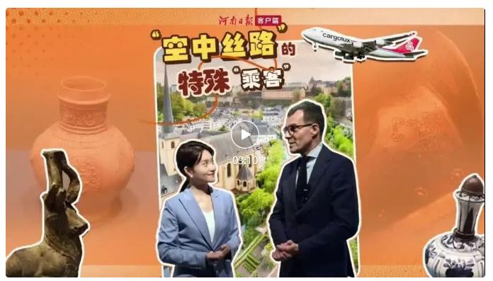 從2013年至今,鄭盧“空中絲路”的建設(shè)在兩國元首的關(guān)注下取得豐碩成果。從兩家企業(yè)的投資合作,發(fā)展到中盧之間的商貿(mào)往來、綠色能源、客運旅游、人文交流等各方面。2018年,河南航投與河南省文物局簽署合作意向書,根據(jù)約定,河南航投將提供航空運輸便利,共同促進(jìn)河南文物的對外開放和交流、促進(jìn)兩地民心相通,由鄭盧“空中絲路”保障了河南文物從鄭州抵達(dá)盧森堡。當(dāng)年11月在盧森堡開展時,米歇爾·波費爾主持了開幕式,河南航投與盧森堡貨航負(fù)責(zé)人一同出席,豫盧雙方在現(xiàn)場達(dá)成深化文化交流的意愿。
