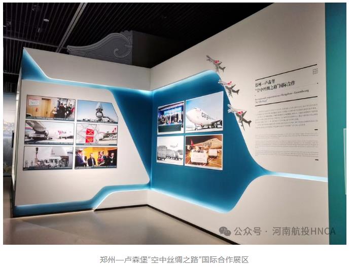 這一主題展板上,精選了10張圖片記錄豫盧共建“空中絲路”的關(guān)鍵事件。既有2014年河南航投與盧森堡貨航在鄭州簽署股權(quán)合作協(xié)議、“鄭州號”巨無霸貨機首次抵鄭的起始節(jié)點;也有這條絲路承運河南省向盧方捐贈的抗疫物資、鄭盧直飛客航首批旅客抵達(dá)的溫暖瞬間;還有盧森堡貨航在鄭州加注可持續(xù)航空燃料、鄭盧航線貨運量突破100萬噸的喜慶時刻,精彩講述豫盧雙方在“一帶一路”框架下相融互促,從硬聯(lián)通、軟聯(lián)通到心聯(lián)通的生動實踐。