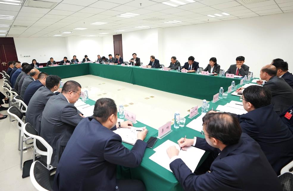 集團領(lǐng)導(dǎo)班子成員與代表們討論報告。