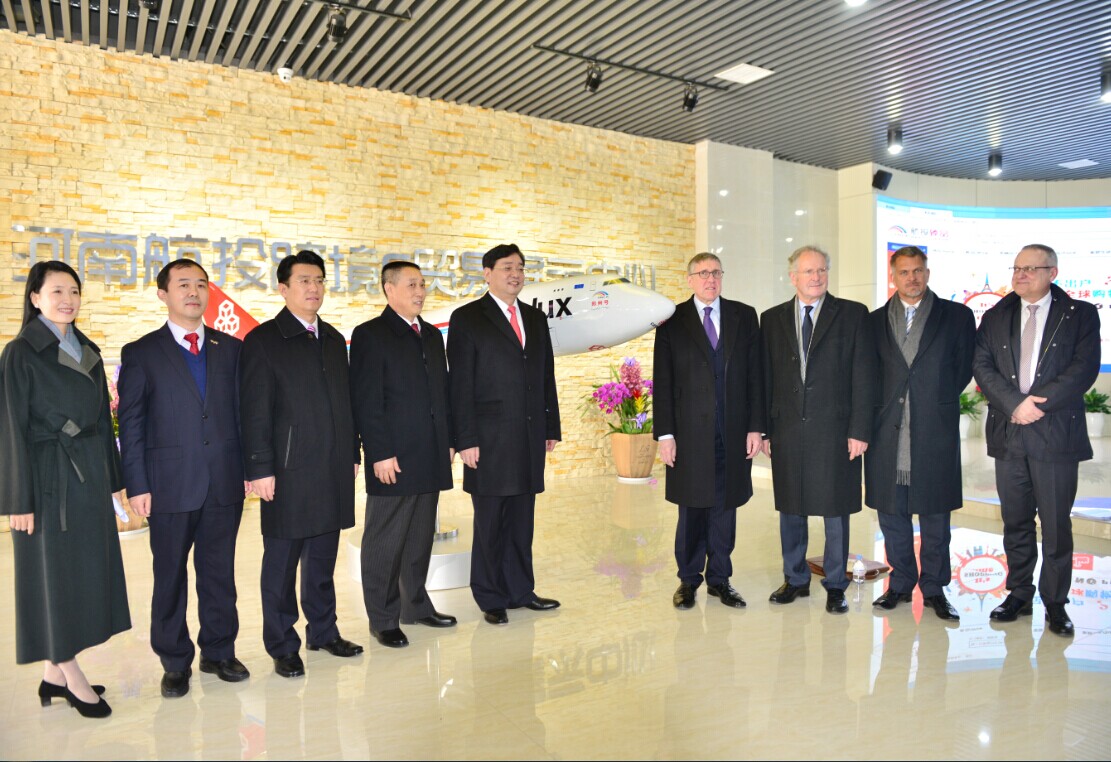1月23日上午,河南民航發(fā)展投資有限公司(以下簡(jiǎn)稱河南航投)跨境E貿(mào)易暨“新鮮盧森堡”項(xiàng)目啟動(dòng)儀式在鄭州航空港區(qū)熱烈舉行。河南省副省長(zhǎng)趙建才、盧森堡可持續(xù)發(fā)展與基礎(chǔ)產(chǎn)業(yè)部部長(zhǎng)弗朗索瓦?鮑施出席儀式并致辭。該項(xiàng)目的啟動(dòng),不僅標(biāo)志著河南航投與盧森堡國(guó)際貨運(yùn)航空公司(以下簡(jiǎn)稱盧貨航)的合作由航空運(yùn)輸拓展至國(guó)際貿(mào)易,實(shí)現(xiàn)了跨行業(yè)的突破;同時(shí)意味著一個(gè)具有先進(jìn)水平的跨境E貿(mào)易平臺(tái)在鄭州航空港區(qū)成功落地,是鄭盧“雙樞紐”戰(zhàn)略深發(fā)展的里程碑,雙方合作從空中絲路向買賣全球邁進(jìn)。