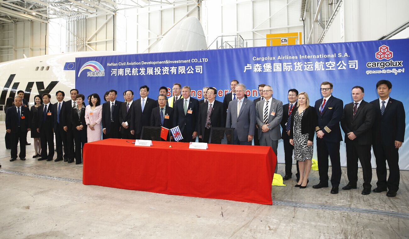 河南航投與盧森堡貨航簽署成立合資貨運(yùn)航空公司及飛機(jī)維修公司協(xié)議