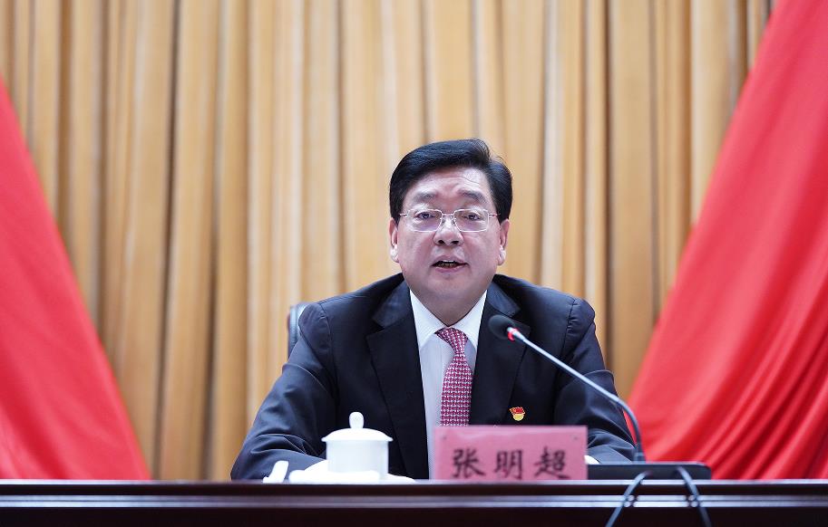 集團黨委書記、董事長張明超代表集團黨委向大會作報告,與會代表在現(xiàn)場認真聆聽。